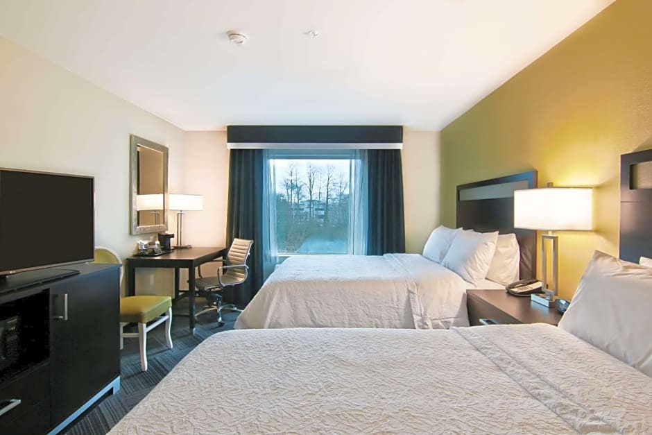 Features: Refrigerator, Microwave, Wet Bar, Sofa Bed, Flat-Screen HDTV, Free WiFi, Hot Breakfast Included, Coffeemaker, Iron and Board and Hairdryer. Unwind in this guest studio which offers one king-sized clean and fresh Hampton bed® and a sofa bed. The bathroom comes complete with deluxe bathroom amenities and fluffy towels. Additional room features include a microwave, mini-refrigerator, comfortable soft seating, wet bar, an HDTV, and easy to operate alarm clock/radio. Work in comfort at the large desk and stay connected with complimentary WiFi. You'll also enjoy the convenience of having a coffeemaker and iron/ironing board in your room.